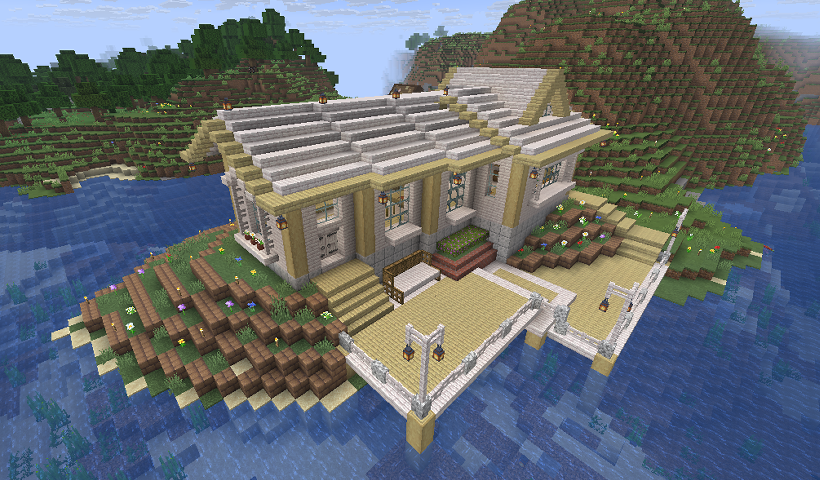マインクラフトでおうちを作りたい! ということで作りました。 立地はこんな感じです。 周りを水辺に囲まれた細長い土地。作る ......